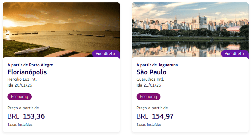 - Voos operados pela LATAM Airlines Brasil, em classe econômica.
