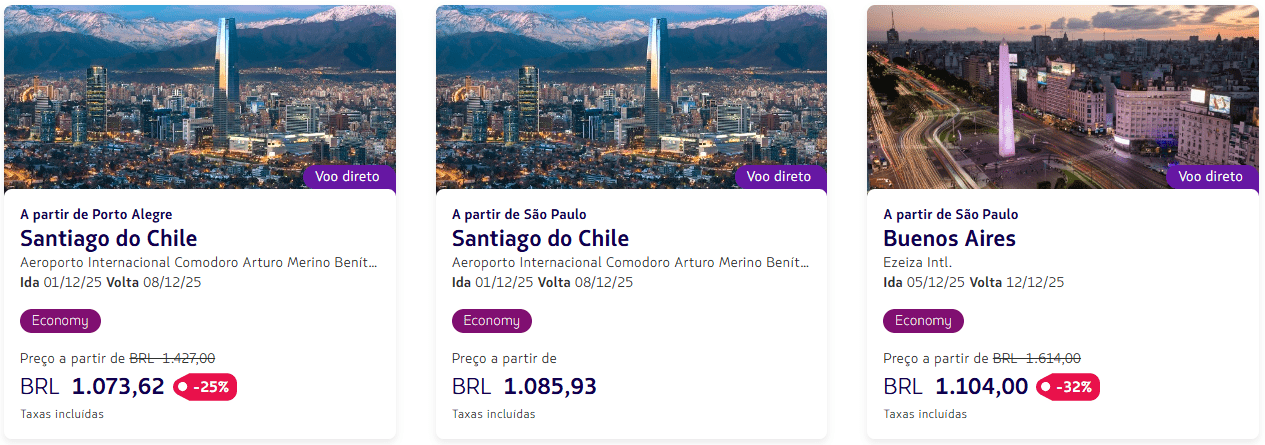 - Porto Alegre → Santiago do Chile — R$ 1.073,62