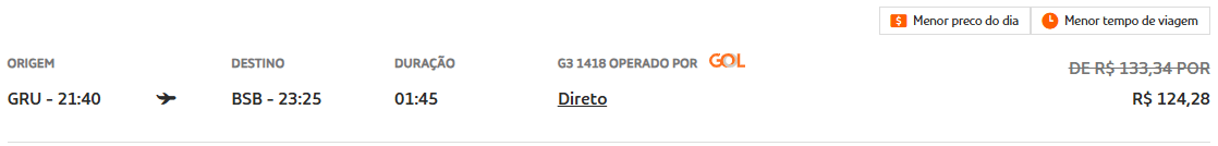 De São Paulo (GRU) para Brasília (BSB) a partir de R$ 124,28.