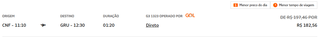 Veja abaixo alguns destaques da promoção GOL, repare nas buscas realizadas no site da companhia que duas tarifas são exibidas, uma riscada com o preço normal e outra com o desconto da promoção.