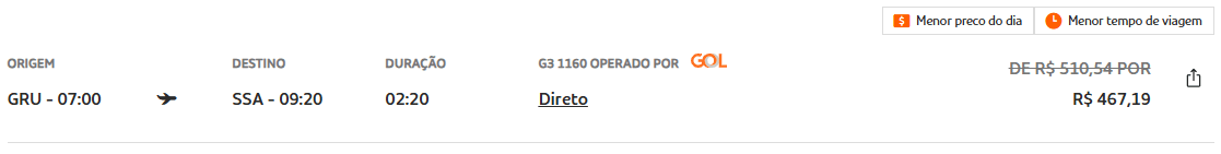 De São Paulo (GRU) para Salvador (SSA) a partir de R$ 467,19.