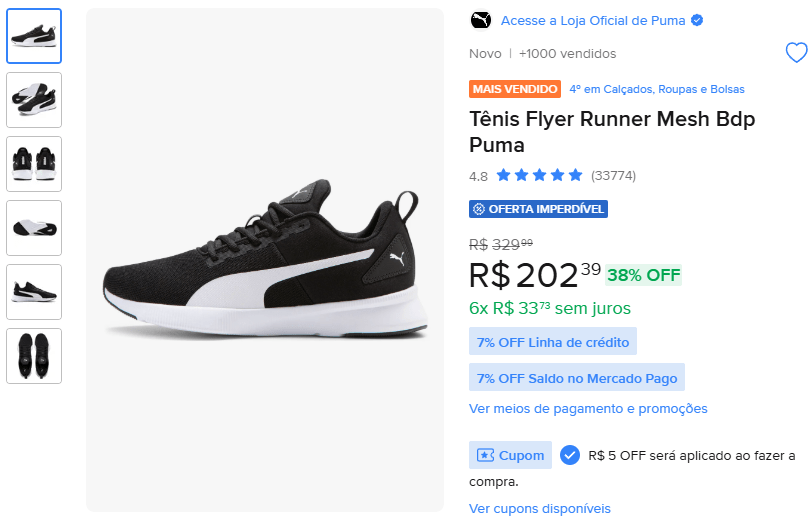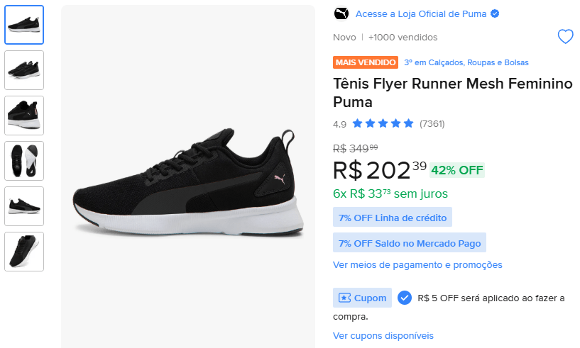 Tênis Flyer Runner Mesh Bdp Puma: de R$ 329 por R$ 202 (38% de desconto!), mais um produto com frete grátis!
