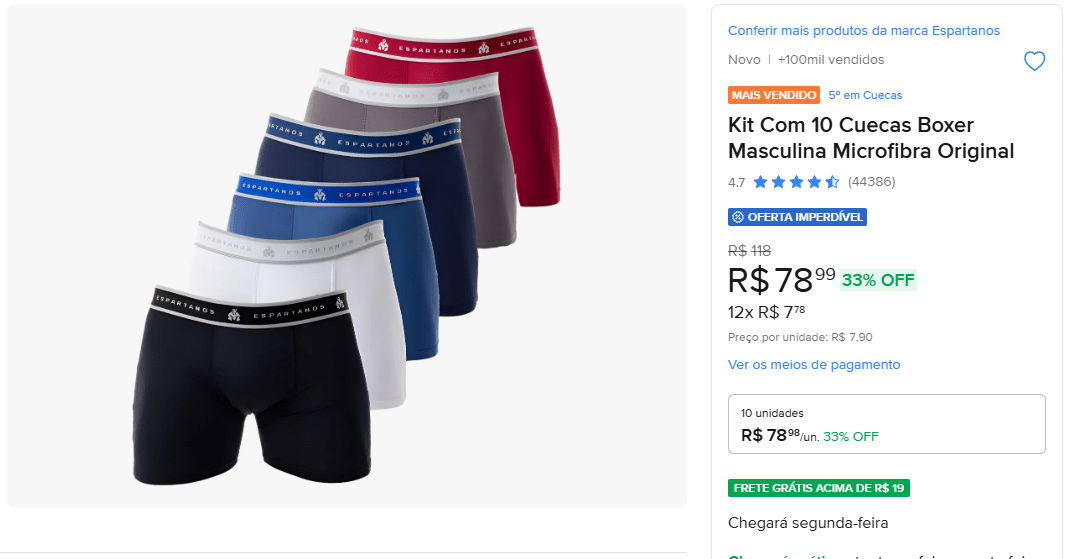 Kit Com 10 Cuecas Boxer Masculina Microfibra Original: de R$ 118 por R$ 78 (33% de desconto!) + frete grátis!