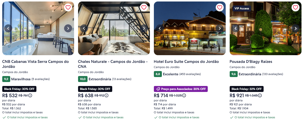 Encontramos descontos de até 62% em alguns dos destinos mais buscados do Brasil: Porto de Galinhas e Campos do Jordão. Confira!