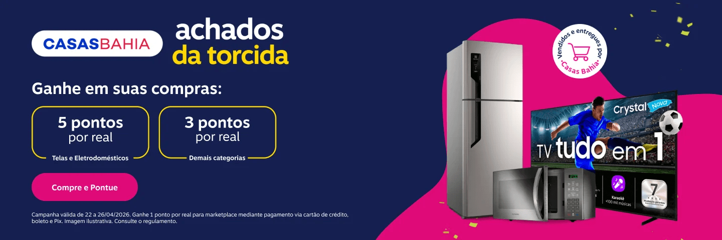 Casas Bahia: 5 pontos por real na categoria de telas e eletrodomésticos; 3 pontos por real nos demais produtos vendidos e entregues por Casas Bahia e 1 ponto por real para marketplace mediante pagamento via cartão de crédito, boleto e Pix.