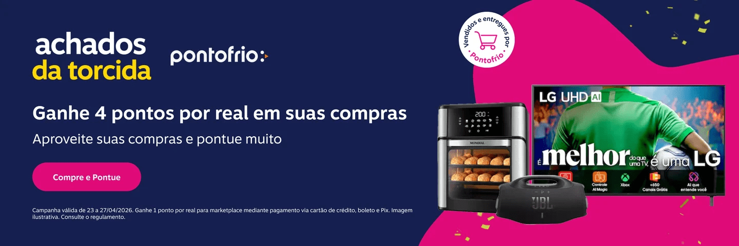 Ponto Frio: 4 pontos por real gasto em produtos vendidos e entregues por Pontofrio e 1 ponto por real para marketplace mediante pagamento via cartão de crédito, boleto e Pix.