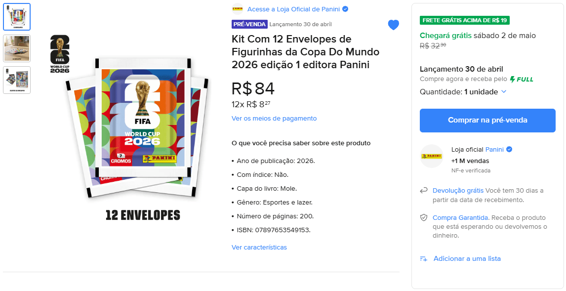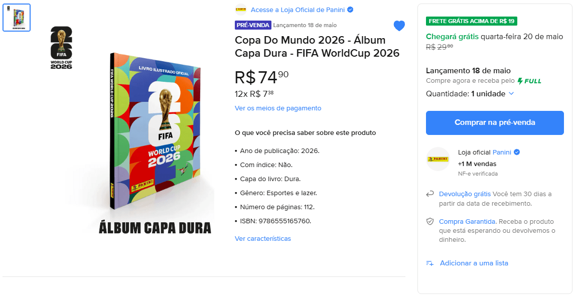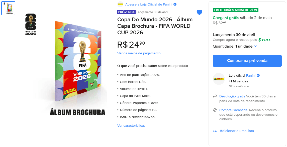 👉 Ver oferta álbum capa mole a partir de R$ 24,90 na loja oficial da Panini no Mercado Livre.