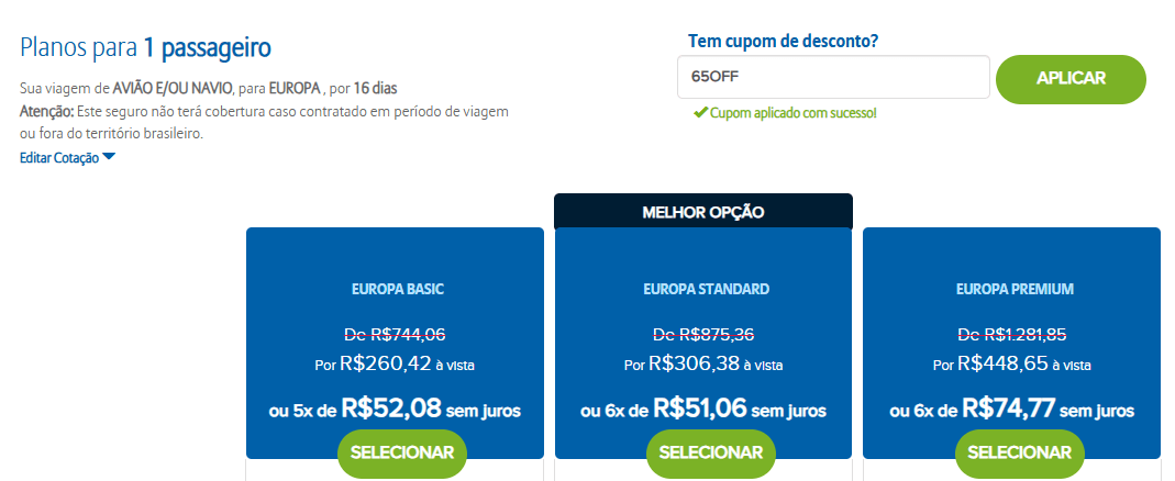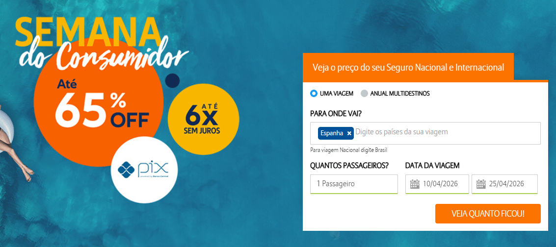 Simulação real: seguro para Espanha com 65% OFF