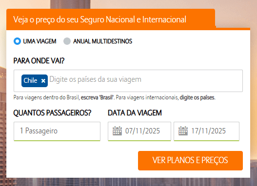 - Este seguro não terá cobertura caso contratado em período de viagem ou fora do território brasileiro.