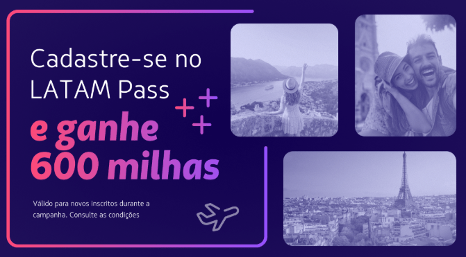 O LATAM Pass lançou a campanha de aniversário oferecendo 600 Milhas LATAM Pass como bônus para novos clientes que realizarem cadastro no programa de fidelidade durante o período promocional.
