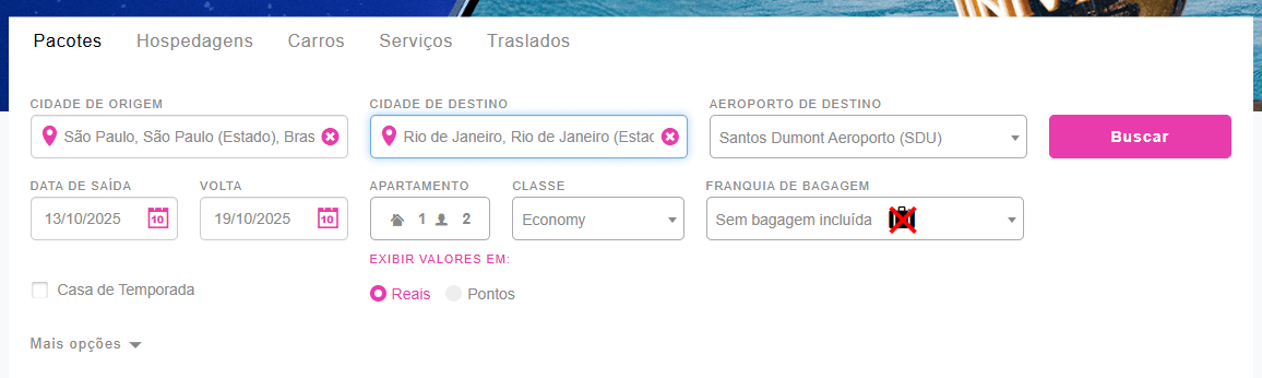 - Clique em “Buscar” ou “Pesquisar pacotes”.