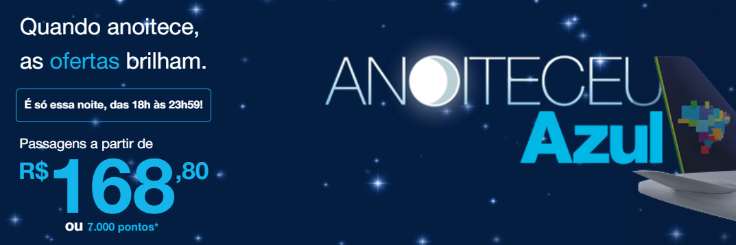 A Azul lançou, nesta quarta-feira (22), mais uma edição do Anoiteceu Azul, a sua promoção relâmpago de passagens aéreas!