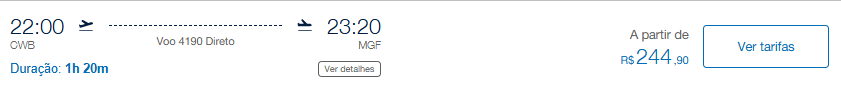 Até às 23h59 de hoje, viajantes encontram voos nacionais a partir de R$ 165,57 o trecho para destinos como São Paulo, Chapecó, Brasília, Curitiba, Maringá e muito mais.