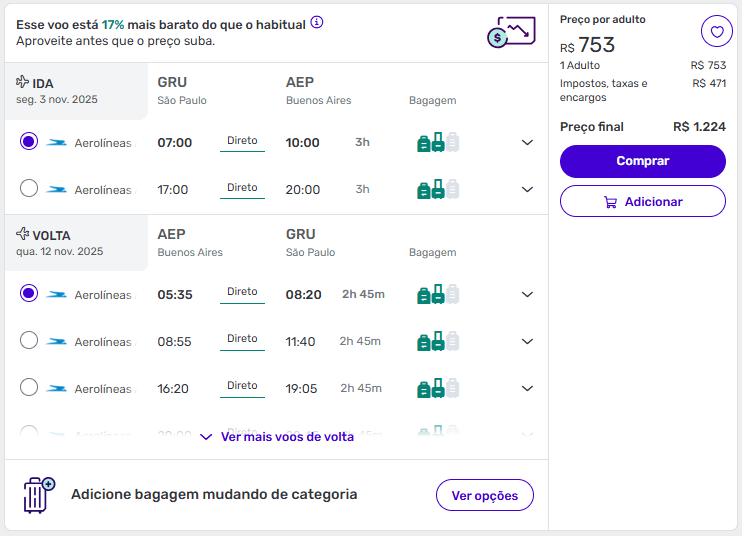 De São Paulo para Buenos Aires a partir de R$ 1.224 ida e volta.