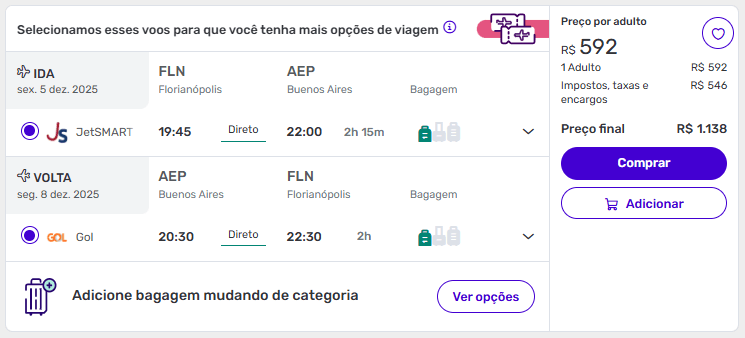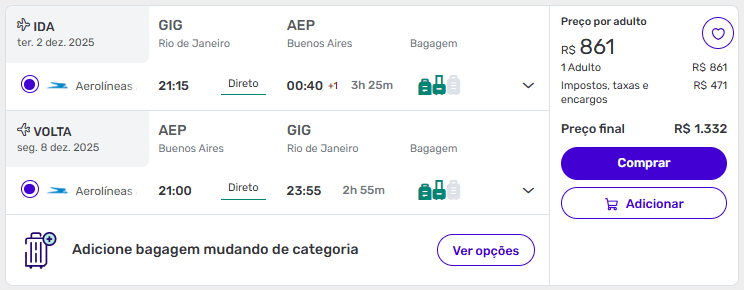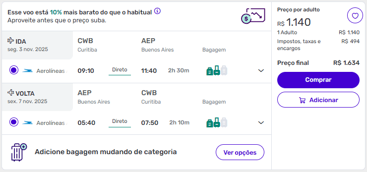 Exemplos de passagens aéreas baratas para Buenos Aires