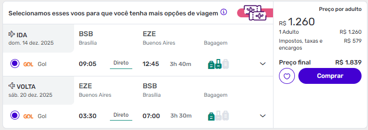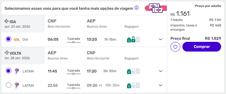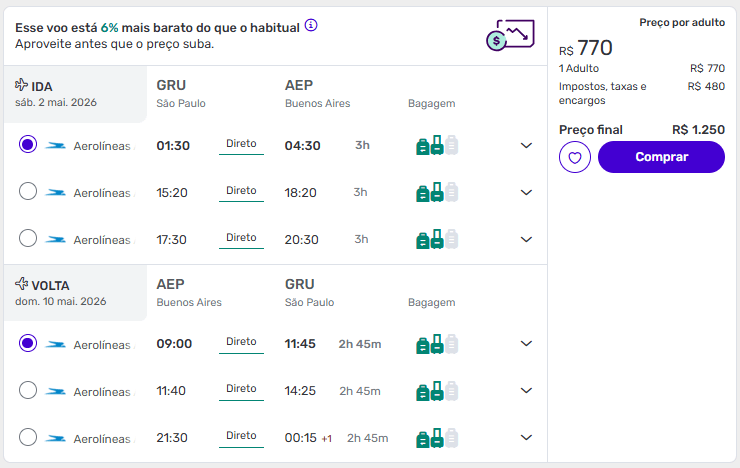 Exemplos de passagens aéreas baratas para Buenos Aires
