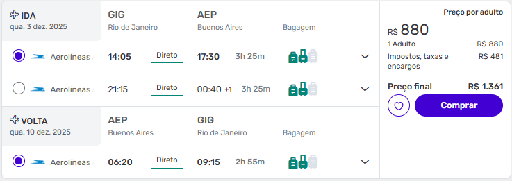 Preços baixos para viajar para a Argentina! Confira abaixo as melhores ofertas do dia para quem pretende embarcar para Buenos Aires.