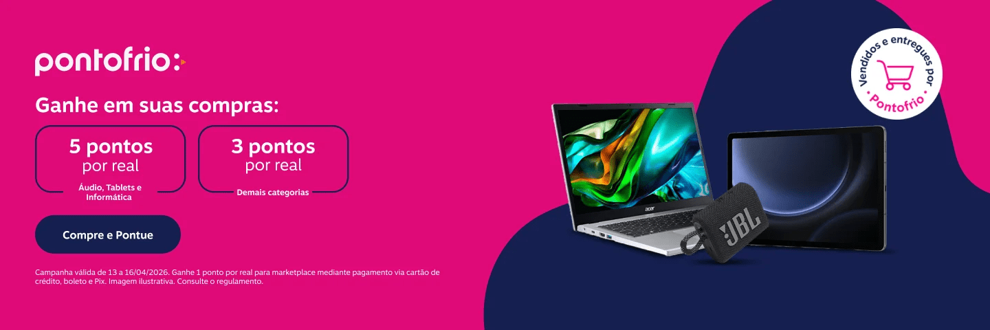 Ponto Frio: 5 pontos por real gasto nas categorias de áudio, tablets e informática; 3 pontos por real nos demais produtos vendidos e entregues por Pontofrio e 1 ponto por real para marketplace mediante pagamento via cartão de crédito, boleto e Pix.