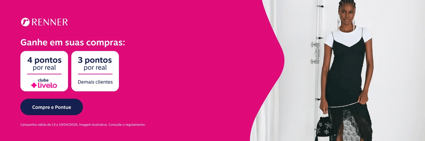 Renner: 4 pontos a cada real gasto, exclusivo para assinantes do Clube Livelo e 3 pontos demais clientes.