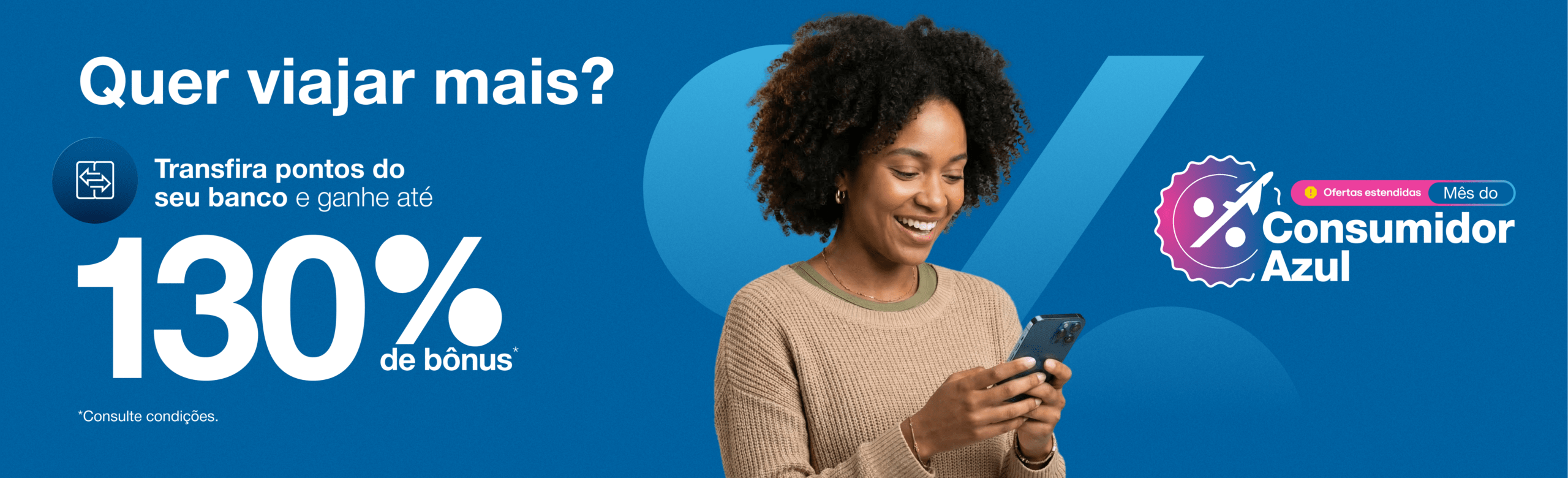 O Azul Fidelidade está com uma das promoções mais agressivas do ano para quem quer turbinar o saldo: transferência de pontos com até 130% de bônus, considerando os adicionais para assinantes mais antigos do Clube Azul.