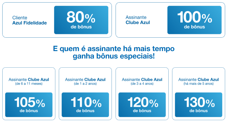 O percentual maior vem dos bônus adicionais por tempo de permanência no Clube Azul:
