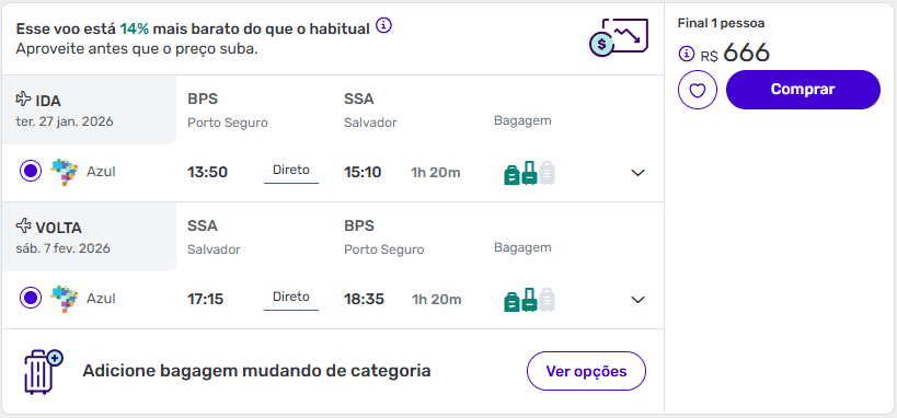 Exemplos de passagens aéreas baratas para a Bahia