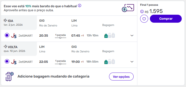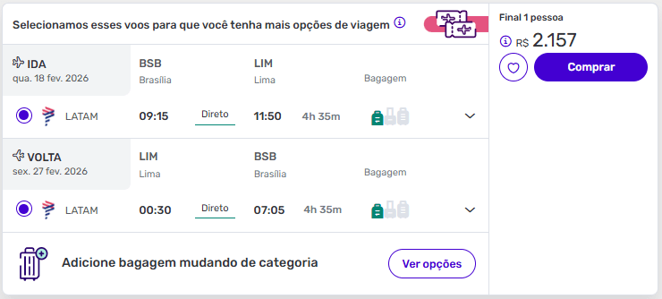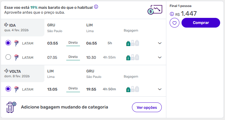 Exemplos de passagens aéreas baratas para Lima