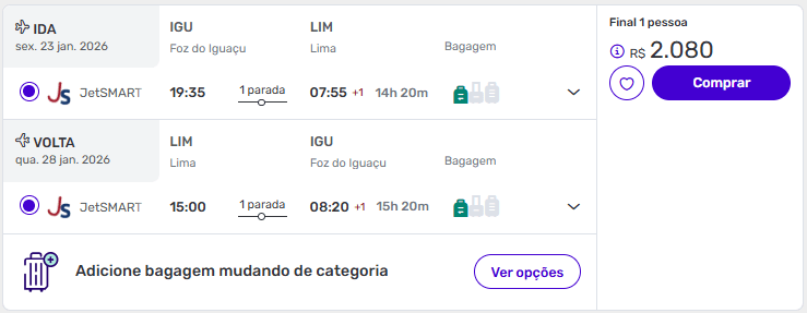 De Foz do Iguaçu para Lima a partir de R$ 2.080 ida e volta.