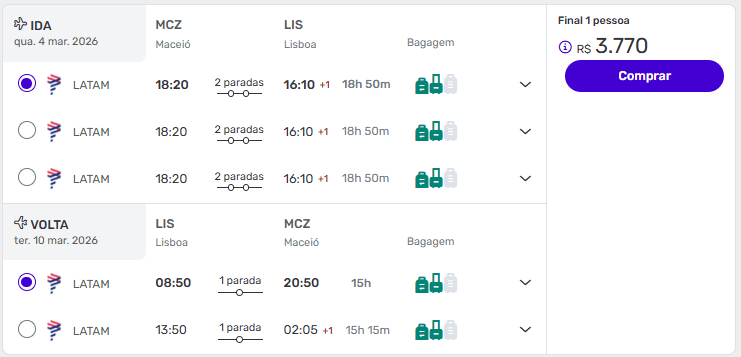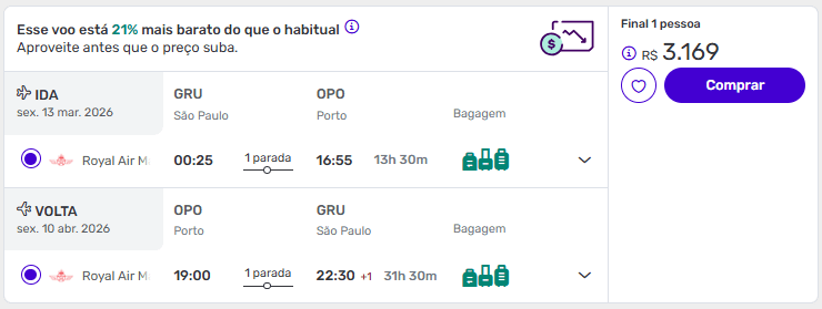 Neste momento, março é o mês que está com as melhores ofertas para embarcar para Portugal.