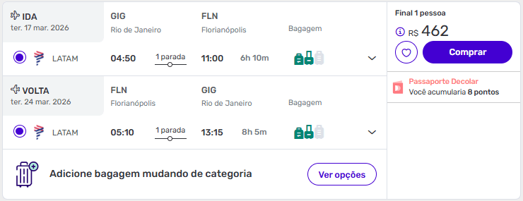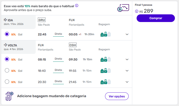 Exemplos de passagens aéreas baratas para Florianópolis