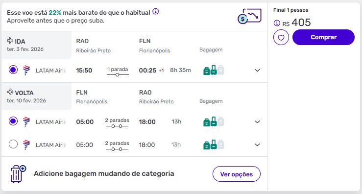 Passagens de Ribeirão Preto para Florianópolis a partir de R$ 405 ida e volta.