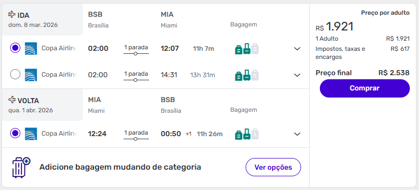 De Brasília para Miami a partir de R$ 2.538 ida e volta.