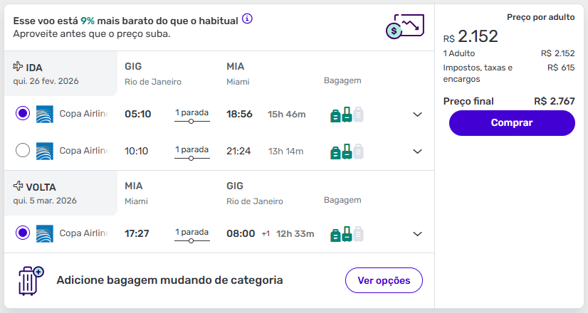De Rio de Janeiro para Miami a partir de R$ 2.767 ida e volta.