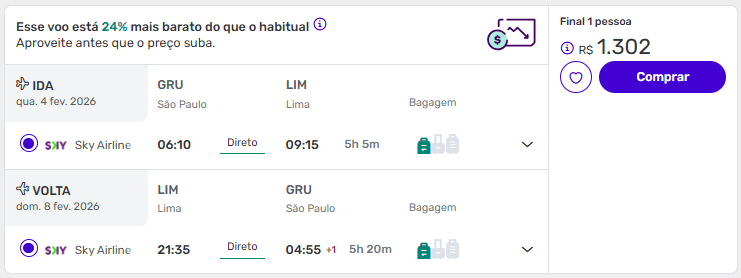 Neste momento, os meses de dezembro, fevereiro, março e maio estão com as tarifas mais competitivas para embarcar rumo a Lima.