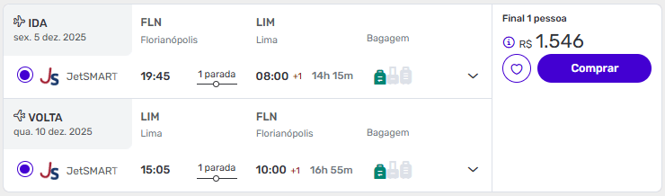 De Florianópolis para Lima a partir de R$ 1.546 ida e volta.