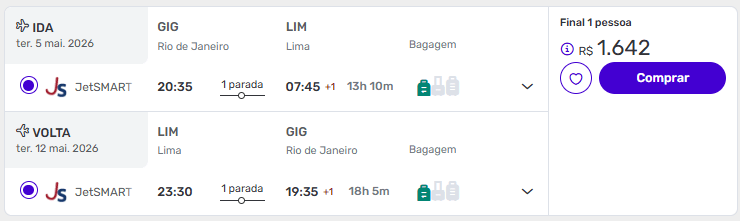 Exemplos de passagens aéreas baratas para Lima