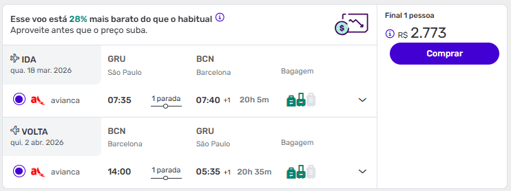 Passagens de ida e volta de São Paulo para Barcelona a partir de R$ 2.773