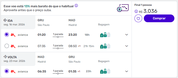 Encontramos nesta segunda (10/11), ofertas de voos de ida e volta para Madrid ou Barcelona, a partir de R$ 2.773, com taxas inclusas, barato demais!