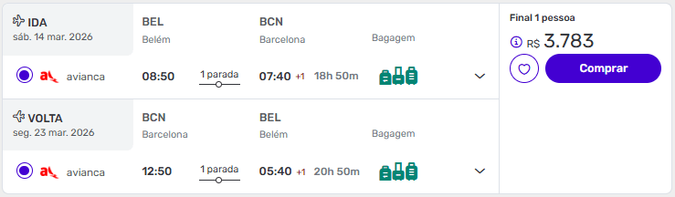 Passagens de ida e volta de Belém para Barcelona a partir de R$ 3.783 com bagagem