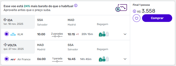 Passagens de ida e volta de Salvador para Madrid a partir de R$ 3.558