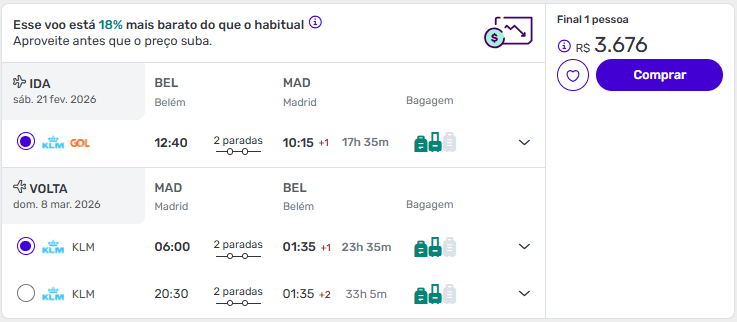 Passagens de ida e volta de Belém para Madrid a partir de R$ 3.676