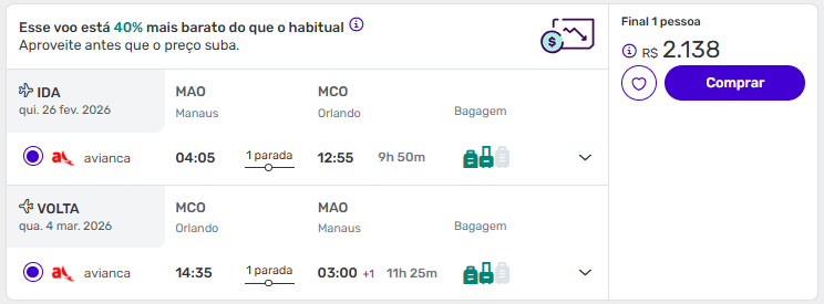 De Manaus para Orlando a partir de R$ 2.138 ida e volta.