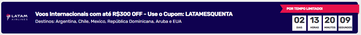 Para melhorar, está rolando um cupom de até R$ 300 de desconto para voos da LATAM: