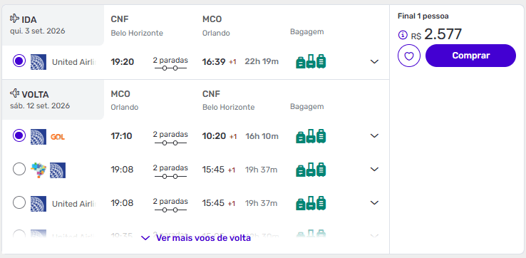De Belo Horizonte para Orlando a partir de R$ 2.577 ida e volta com bagagem.