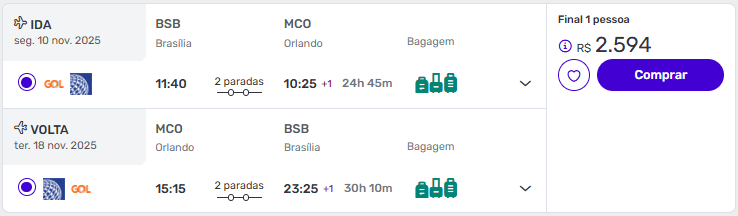 De Brasília para Orlando a partir de R$ 2.594 ida e volta com bagagem.