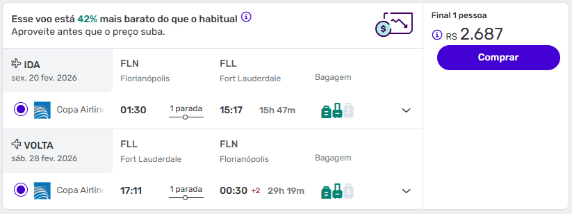 De Florianópolis para Fort Lauderdale a partir de R$ 2.687 ida e volta.