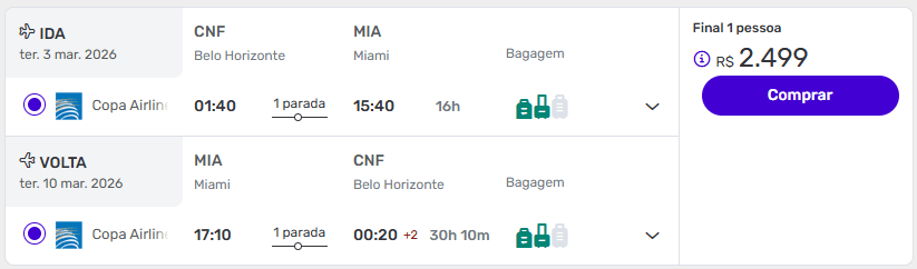 De Belo Horizonte para Miami a partir de R$ 2.499 ida e volta.