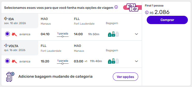 De Manaus para Fort Lauderdale a partir de R$ 2.086 ida e volta.