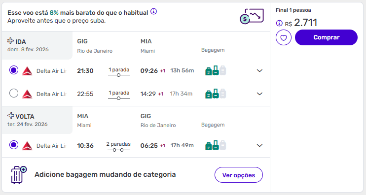 Neste momento, fevereiro, março e abril de 2026 são os meses que estão com as melhores ofertas para embarcar para a Flórida.