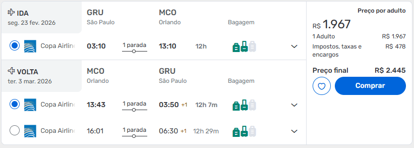De São Paulo para Orlando a partir de R$ 2.445 ida e volta.